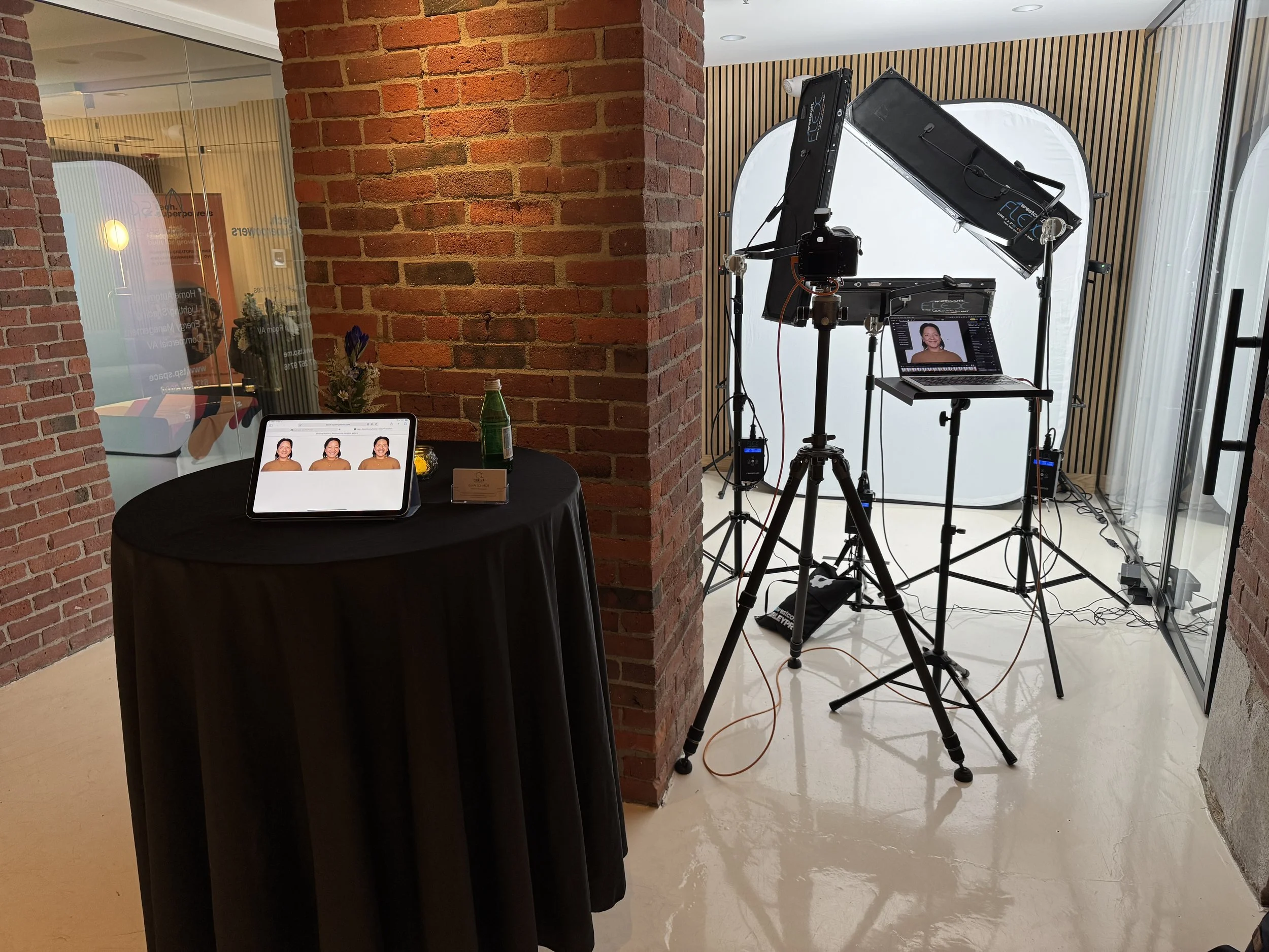 You may have seen lighter versions of this — a tablet on a stand, a ring light, and a quick tap-to-shoot experience. These can be entertaining, but they don’t deliver the kind of images people rely on for LinkedIn, speaking profiles, or internal company bios. And without coaching, most attendees fall into the same tense posture and polite smile they use in every rushed photo.
